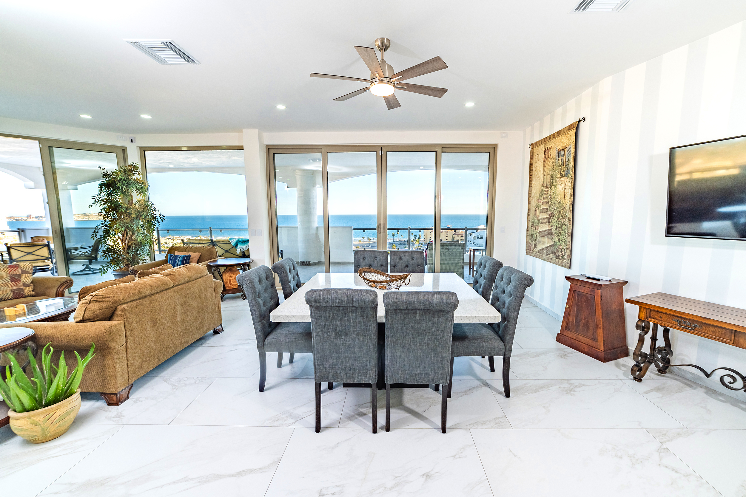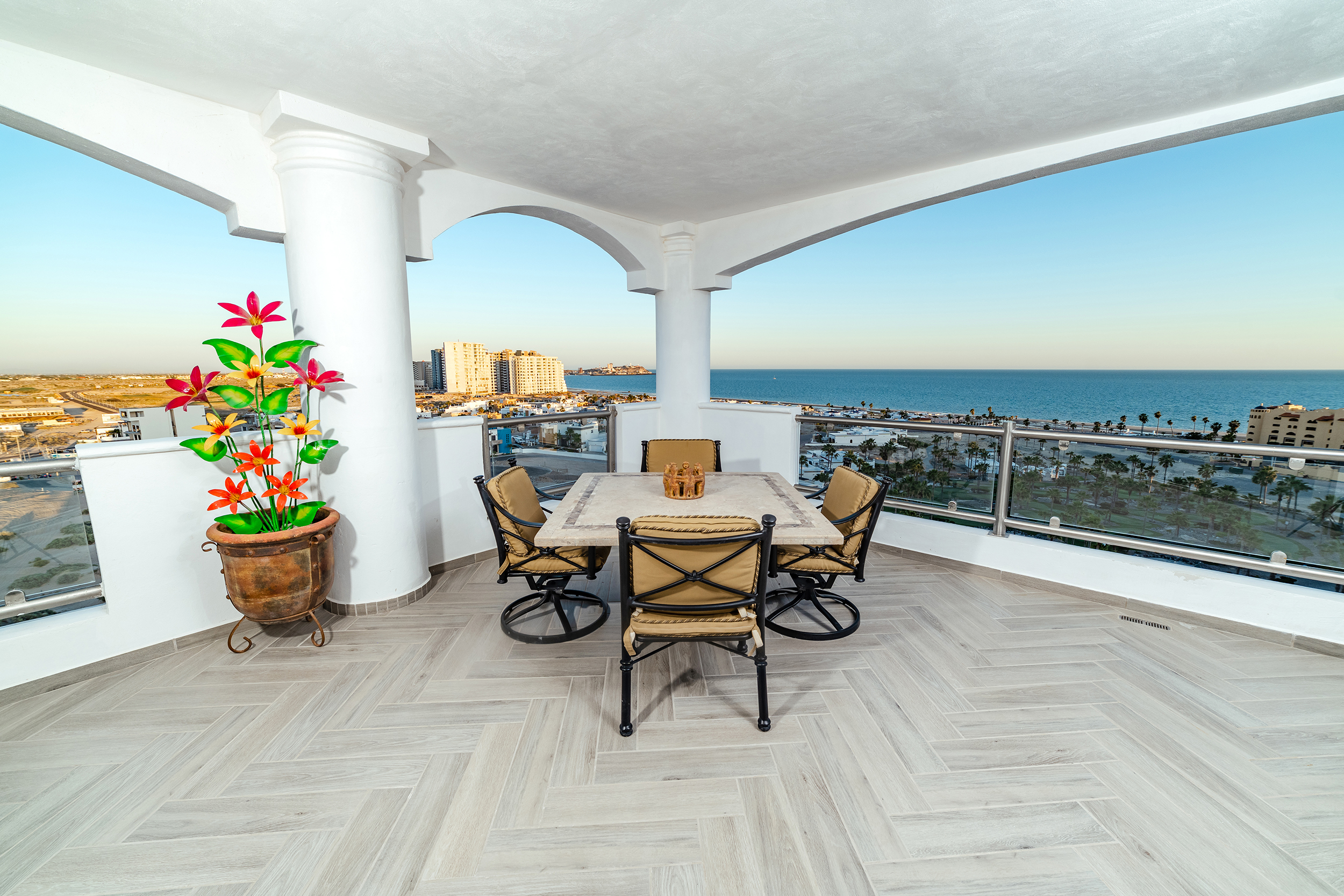 Nestled on the eighth floor of Casa Blanca Golf Villas, this three-bedroom, ocean-view corner condominium offers a luxurious retreat in the heart of Puerto Peñasco. Step onto the private wrap-around terrace to witness breathtaking panoramic views of the surrounding landscapes and the sparkling ocean. Inside, modern amenities await, including high-speed Wi-Fi and a fully-equipped kitchen. Each bedroom features a comfortable king-size bed, ensuring a restful night’s sleep. The spacious living areas are adorned with tasteful decor, providing ample space for relaxation and entertainment. Guests can indulge in resort facilities such as outdoor pools, gardens, an on-site restaurant, and a mini-golf course. The unit accommodates up to 6 adults and 2 children. This condominium is conveniently located near popular attractions and is ideal for families or groups seeking a memorable vacation experience. Small pets are welcome, and a minimum age of 25 is required to book. Book your stay today and immerse yourself in the tranquility and beauty of Casa Blanca Golf Villas.